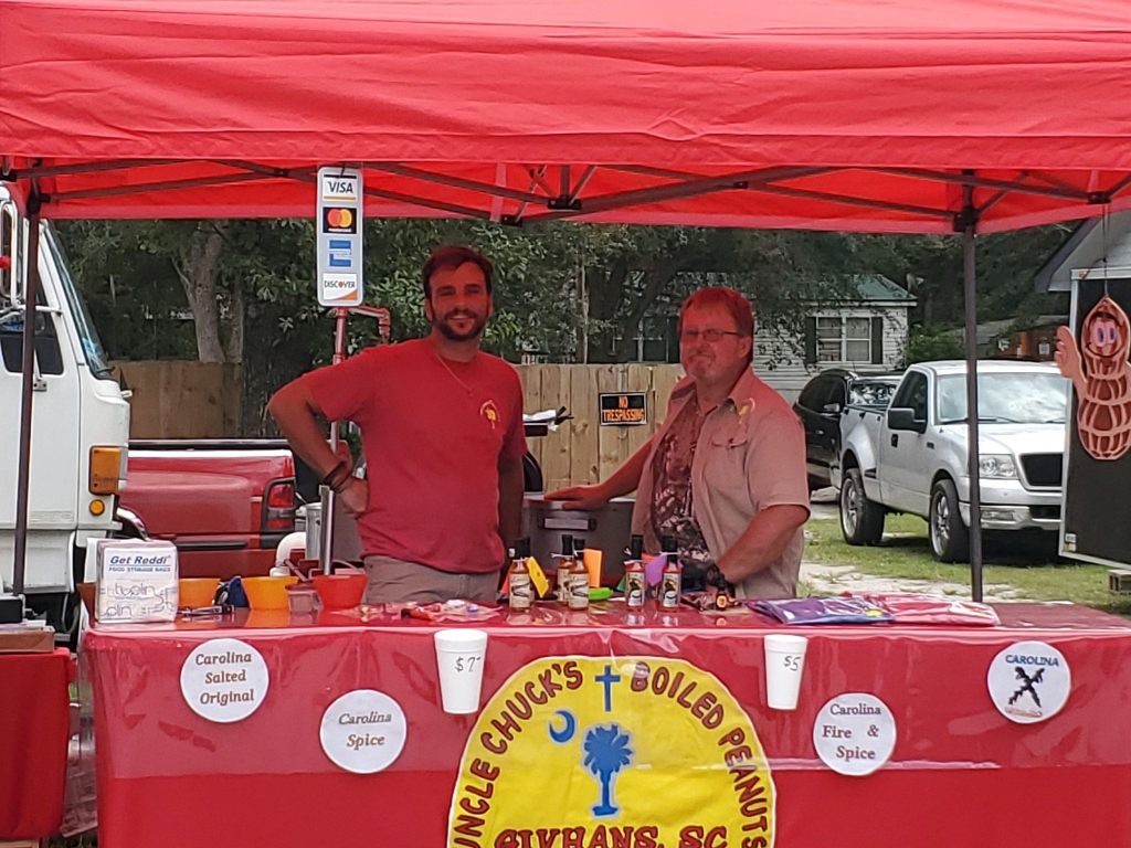 We normally set up on Saturdays, Sundays at the corner of Highway 61N and 17A, Ridgeville SC. We also setup at Chub and Tubbs on Dorchester across from Bosch on Fridays. For information on where and when we are setting up, please follow our Facebook page: Uncle Chuck’s Boiled Peanuts. We also participate in events and take special orders for parties and gatherings. Contact us for more information.
